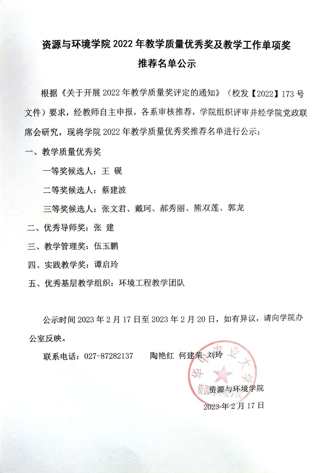 9428cn太阳集团2022年教学质量优秀奖及教学工作单项奖推荐名单公示