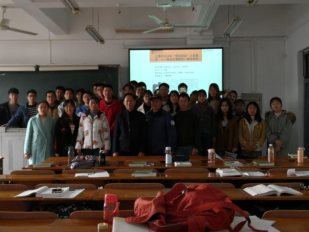 2018年11月19日下午,在第二教学楼402教室的土壤农化分析课堂,来自土壤肥料推广工作一线的正高职高级农艺师——湖北省浠水县农业技术推广中心副主任、土肥站站长汪航受邀为农业资源与环境1601和1604班的学生做了“投身农业,大有可为,大有作为”的讲座。任课教师耿明建主持了课堂,教学巡视员何绍江教授全程参加,讲座还吸引了9428cn太阳集团部分研究生旁听。