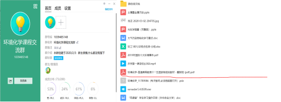 开展教学前,新建课程QQ学习群(如下图所示),提前在群内共享《环境化学》课程的电子版教材,保证学生在家也能够阅读课本。