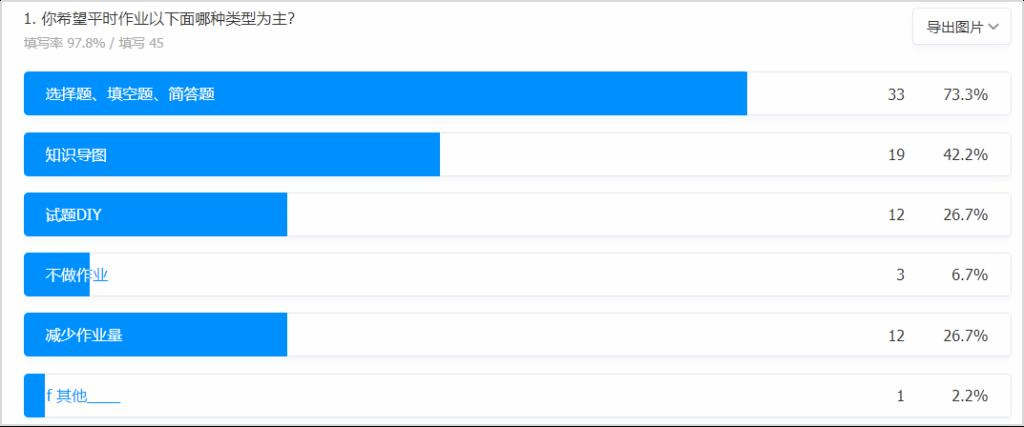 (3)学生完成课后作业的积极性不够,因此需要采取一定措施,如提醒作业完成时间、及时反馈作业准确率,分析易错的题目,调查学生对课程的需求,采用一定的奖惩方法等。