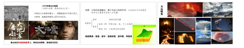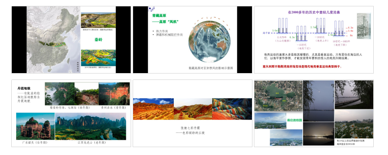 地理现象在视听觉方面大多具有较强的冲击力,但其背后的原理又不易理解。这要求我们在课件PPT制作上不断精益求精, 将各种地理信息有效地传递给学生。当看到PPT上用电影海报、动画、影视片段等综合展示的地震、火山、滑坡、泥石流、崩塌等,学生会更深刻地认识和掌握这些自然现象的特征、成因、识别方法,以及人类的应对能力。