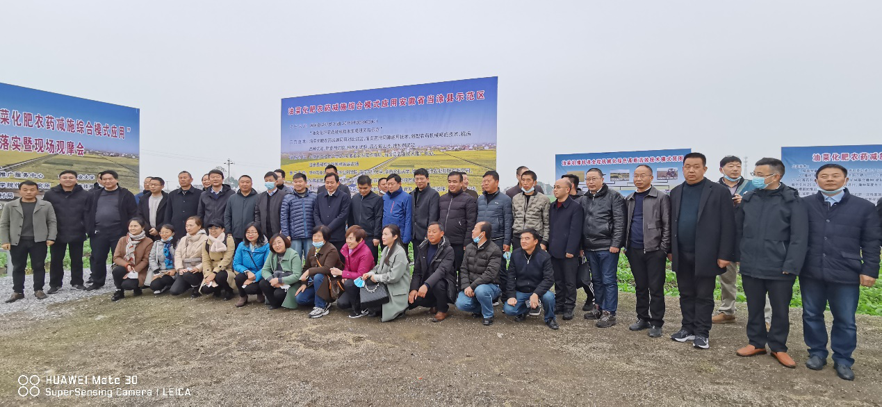 12月1日,为了进一步推广应用油菜高产高质绿色发展的减肥减药技术和综合集成技术模式,油菜化肥农药减施高效集成模式示范现场观摩会在安徽省当涂县举行,来自全国油菜主产省及优势生产示范县的油菜生产技术推广部门主管领导及相关专家近百余人参加了此次活动。现场观摩会由全国农技推广服务中心和我校联合举办,安徽省农业科学院和当涂县农业农村局承办。国家重点研发计划“油菜化肥农药减施技术集成研究与示范(2018YFD0200900)”项目首席专家、我校9428cn太阳集团鲁剑巍教授,全国农业技术推广服务中心经济作物处王积军处长、安徽省农业科学院科研处李成处长、安徽省农业技术推广总站杨汉明副站长、当涂县人民政府姚国基副县长等领导和专家参加会议。