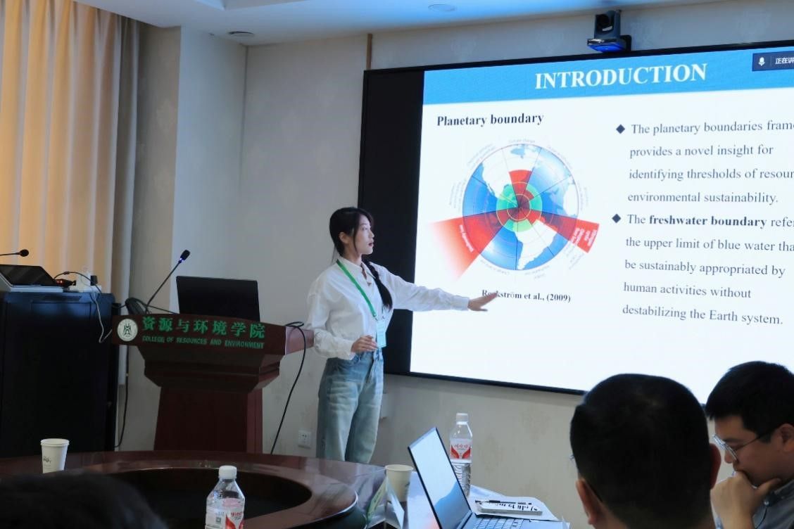 随后来自荷兰格罗宁根大学的博士侯思雨揭示消费行为通过供应链加剧水危机的机制。其研究整合15个水文模型与5种环境流方法,依托EMERGING经济模型将全球245个经济体、134个部门的消费与网格级淡水超限热点精准关联。发现24%水资源超限经贸易转移,主要从南亚中部流向西亚;29%消费端水超限由谷物及农产品驱动,纺织品与机械出口加剧新兴制造中心压力。我院周云教授交流探讨中称该成果是“水资源责任追溯的精准地图”,对落实可持续发展目标(SDG 6 & 12) 具有重大意义。