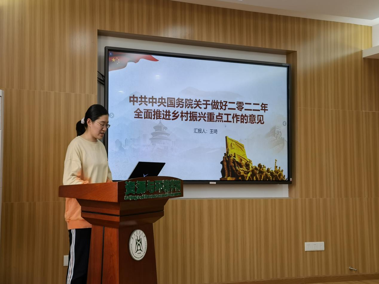 之后,王琦同志领学了中共中央国务院关于做好二零二二年全面推进乡村振兴重点工作的意见。她介绍了意见中明确的两条底线任务和 三方面重点工作,以及推动实现“两新”,同时总结了意见的重要意义。她谈到:致天下之治者在人才,成天下之才者在教化,人才振兴实施正确方向是实现乡村稳、农业兴的重要因素。我们作为青年党员,作为9428cn太阳集团古天乐的一名学生,要坚持以习近平新时代中国特色社会主义思想为指导,深入贯彻党的十九大和十九届历次全会精神,努力提高自身综合素质,为乡村振兴保驾护航。