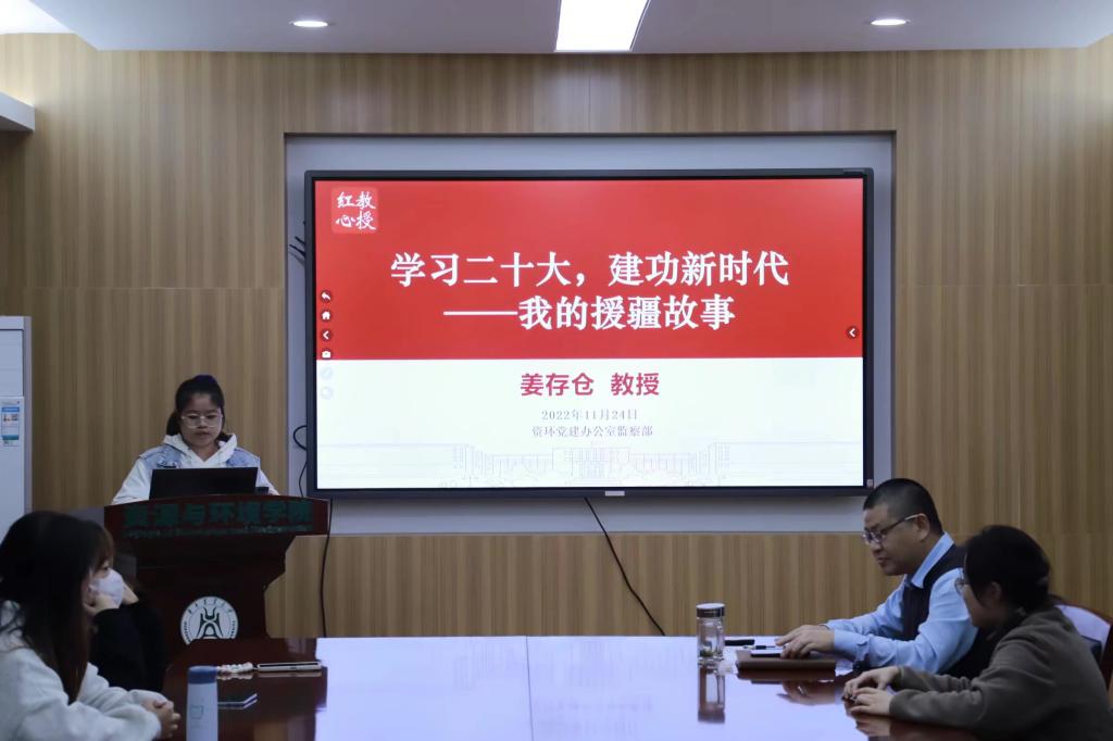 11月24日,我院第15期“教授红心工作室”交流活动在主楼315会议室展开,姜存仓教授以“学习二十大,建功新时代”为主题,与同学们分享了他的援疆故事。