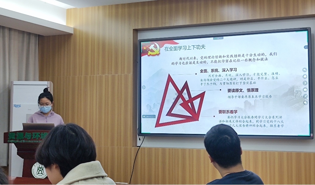 会上,党支部全体共同学习中共中央关于认真学习宣传贯彻党的二十大精神的决定、习近平在中共中央政治局第一次集体学习时的讲话、中国共产党第二十次全国代表大会关于《中国共产党章程(修正案)》的决议、中国共产党第二十次全国代表大会关于十九届中央纪律检查委员会工作报告的决议、中国共产党党徽党旗条例和重视用火安全坚决防范和遏制重特大事故发生,全面学习、全面把握、全面落实党的二十大精神。