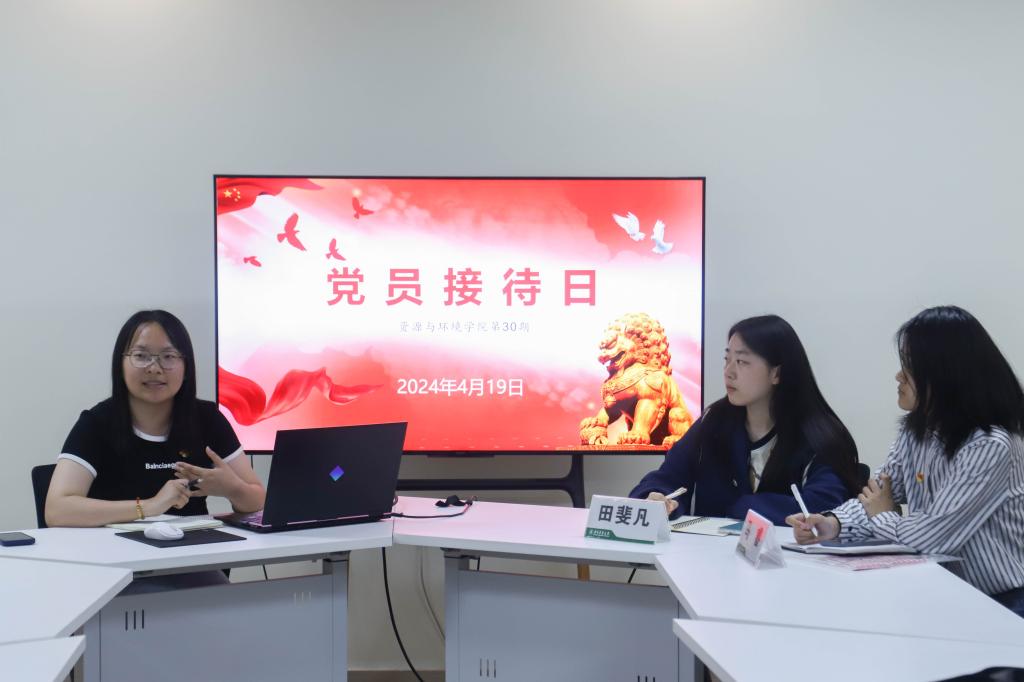 4月19日晚,学院在荟八三楼活动室开展了第30期“党员接待日”活动,学院辅导员、本科生第三党支部书记李艳峰,党员代表田斐凡、马睿参与本次接待日活动,并在现场与同学们进行交流。