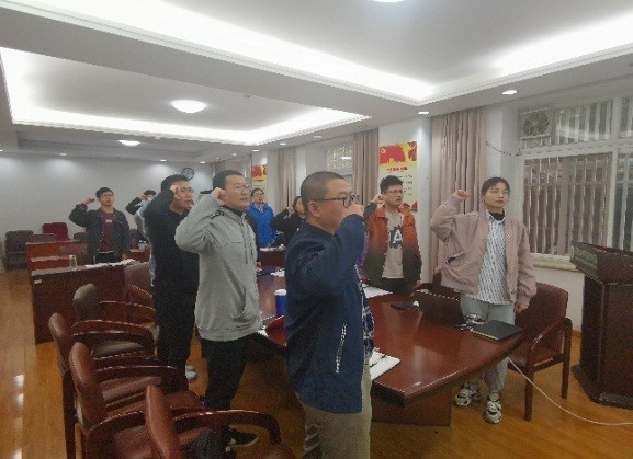 首先,黄小芳同志带领全体党员同志重温入党誓词,随后,大家集体诵读党章、缴纳党费。接着,黄小芳同志领学习近平总书记在纪念中国人民志愿军抗美援朝出国作战70周年展览大会上的重要讲话,学习革命先烈的伟大精神,党员同志针对习近平总书记重要讲话精神进行讨论与交流。黄小芳同志表示:1950年10月19日,英雄的中国人民志愿军雄赳赳气昂昂跨过鸭绿江,与朝鲜人民一同抗击侵略者。作为新时代青年,我们应该向奔赴朝鲜战场上的英雄们学习,不管任何时候都要奋勇拼搏,克服一切艰难险阻,无论什么时候,都不要退缩,因为我们身后有强大的祖国。指导老师张晓明表示:当前国际局势不容乐观,我们更应该学习抗美援朝精神,自立自强,敢于面对一切问题。同时,我们也要发扬抗美援朝精神,在学习和科研过程中,遇到难题,要勇于亮剑,勇于克服,有不懂的问题及时向老师请教,要始终记住:一切困难都是纸老虎,最终胜利一定属于我们。