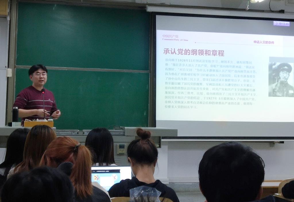 为加强对入党积极分子的培训工作,加深学员对党的基本理论、党的基本路线的理解,进一步提高入党积极分子的理论知识,11月7日我院第78期党校开展以“中国共产党党员的条件、义务和权力”为主题的党校培训,工学院辅导员周熙受邀担任主讲,第78期党校全体学员参加本次活动。