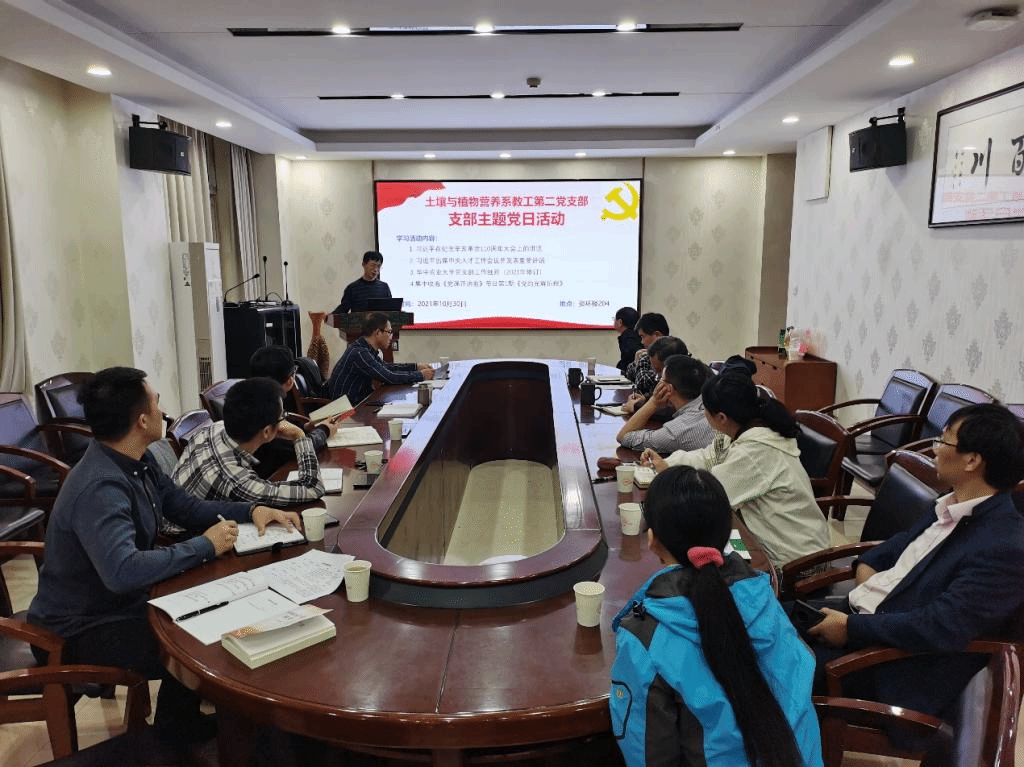 核心提示:10月30下午,我院土壤与植物营养系教工第二党支部在资环楼204会议室开展主题党日活动,深入学习了习近平总书记在纪念辛亥革命110周年大会上的讲话、习近平总书记出席中央人才工作会议发表的重要讲话、以及《9428cn太阳集团古天乐党支部工作细则(2021年修订)》。