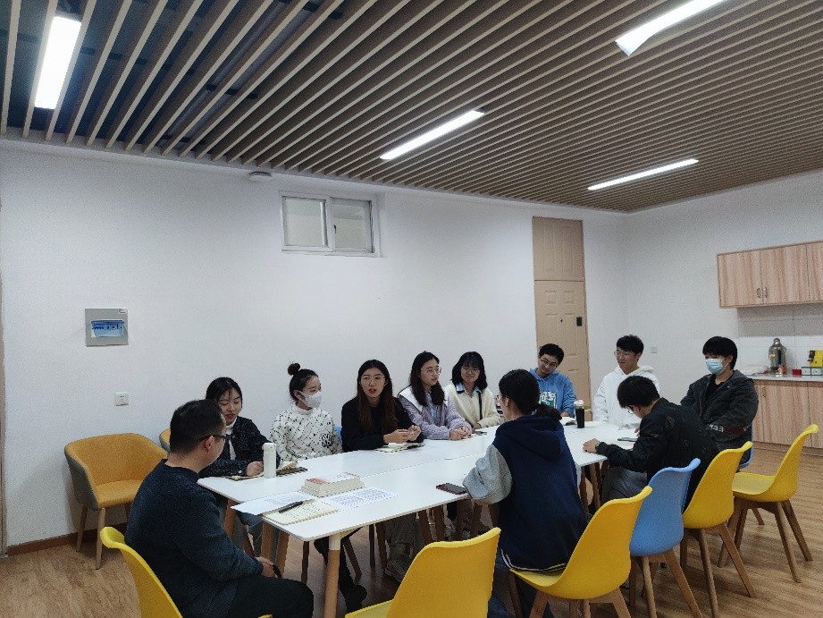 崔晓彩、郝芸芸等12名入党积极分子分别介绍了自己的基本情况,表达了向党组织靠拢的坚定决心。他们表示,疫情期间党员队伍冲在前面让人动容,党领导下的国家日益强大让人倍感鼓舞,如此种种,使得加入党组织的愿望更加迫切。同时,他们也提出了发展过程中遇到的难题和个人的一些思想困惑,周老师不时插话,与大家讨论交流、为大家答疑解惑。