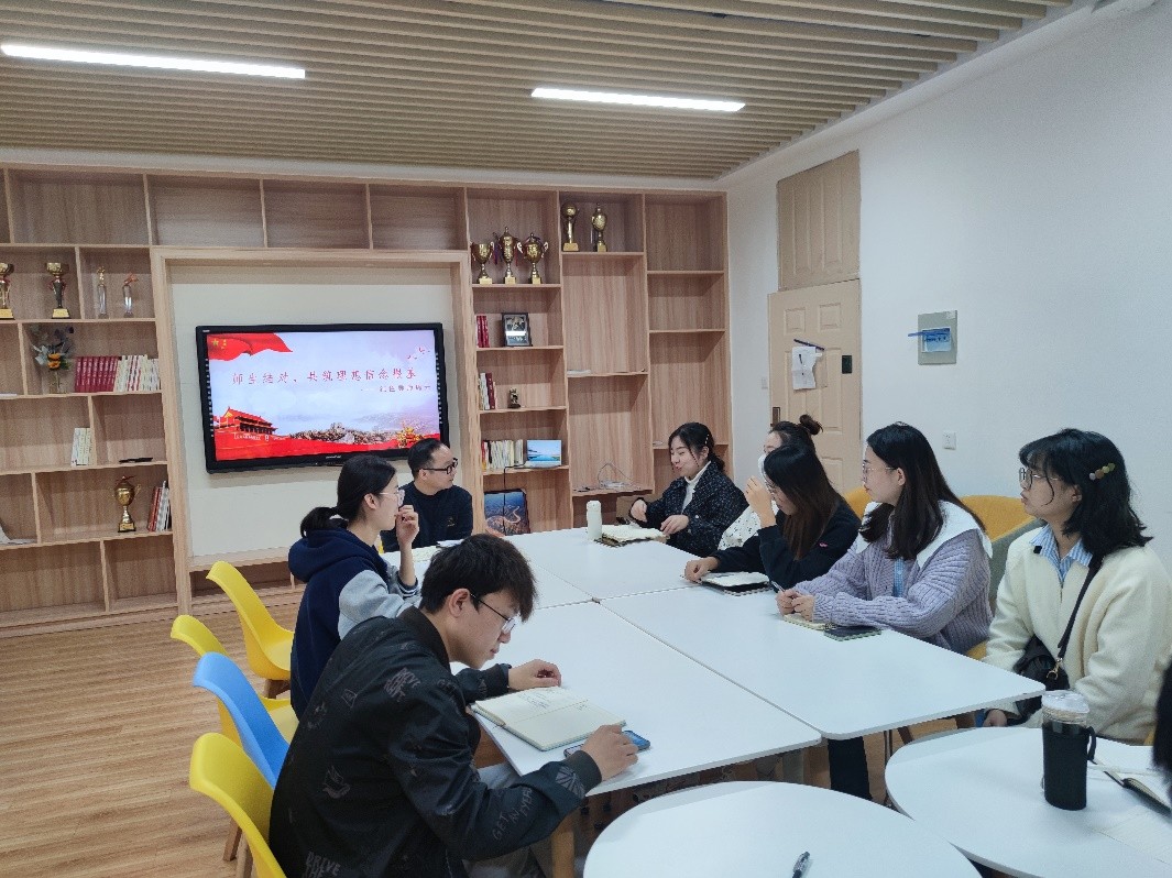 按照“红色导师”导学导行导思想的要求,周老师向支部入党积极分子提出几点期待:一是希望大家积极学习党的理论并定期与培养联系人讨论交流,主动做好记录;二是希望与大家定期交流,每次交流能有两至三名入党积极分子带领大家共同学习《习近平中国特色社会主义思想》《中国共产党简史》或是其它时政热点相关资料,通过交流分享共同巩固提升;三是希望大家理论联系实际,主动承担学校学院、课题组等相关公共管理服务工作,在服务师生中提升自我。
