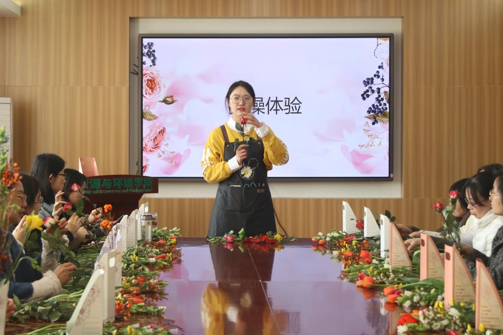 3月8日下午,我院在主楼315会议室举办艺术插花活动,邀请我院女性教师参与体验,共同庆祝妇女节。由我校愈见花艺工作室成员邓楠给老师们讲解插花相关知识与实操步骤。