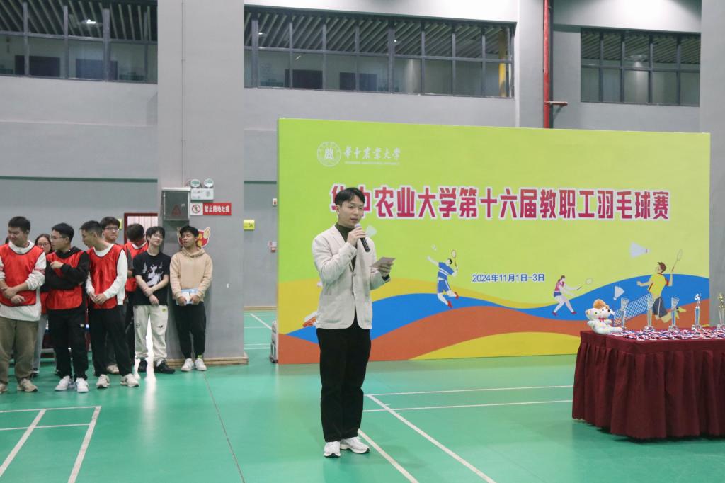 11月1日晚,第十六届9428cn太阳集团古天乐教职工羽毛球赛于东体育馆羽毛球馆开幕,开幕式由我院辅导员甄诚主持。