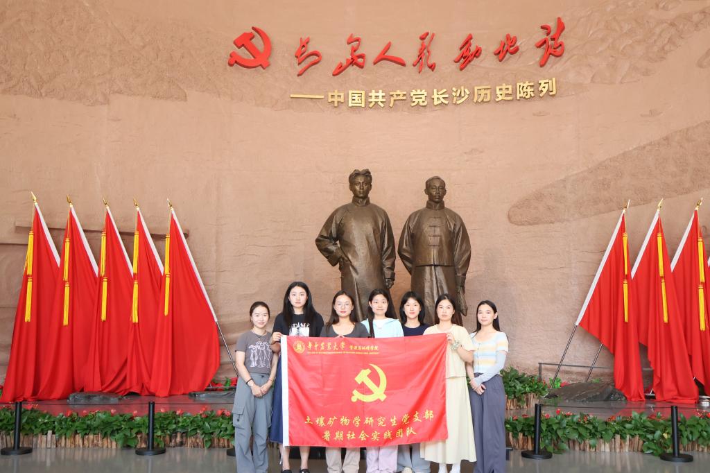 (通讯员:付一晟、秦尚彬、李博涵)7月19日至21日,学院土壤矿物学研究生党支部暑期社会实践团队队长尹慧琳携十名队员前往湖南省长沙市、韶山市,在韶山毛主席故居、湖南第一师范学院、岳麓书院、新民学会成立会旧址、中国共产党长沙历史馆等红色旧址开展“长沙韶山迹永存,红色精神代代传”实践调研活动,旨在深刻领悟红色精神的内涵和价值,激发新一代青年的爱国热情和奋斗精神,使红色精神在新时代得到创造性的传承和发展。