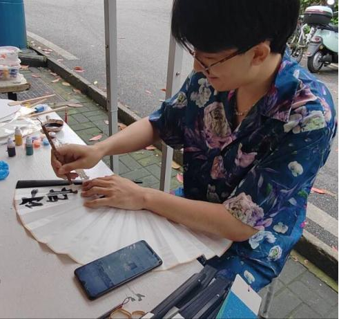 在活动现场,工作人员为参与者提供了大漆、团扇、书签、笔、墨水等多种DIY原材料。参与者化身“小艺术家”,以漆为笔,以扇为纸,演绎中国传统美学,流云变幻,尽显诗情画意之美。制作完成后,参与者可将成品送给努力学习的自己,可以送给诚信经营的商家,还可以送给兢兢业业的老师们,通过这份小礼物传递出自己的感恩之情。“以手制物,以物寄情”正是本项活动的意义所在。