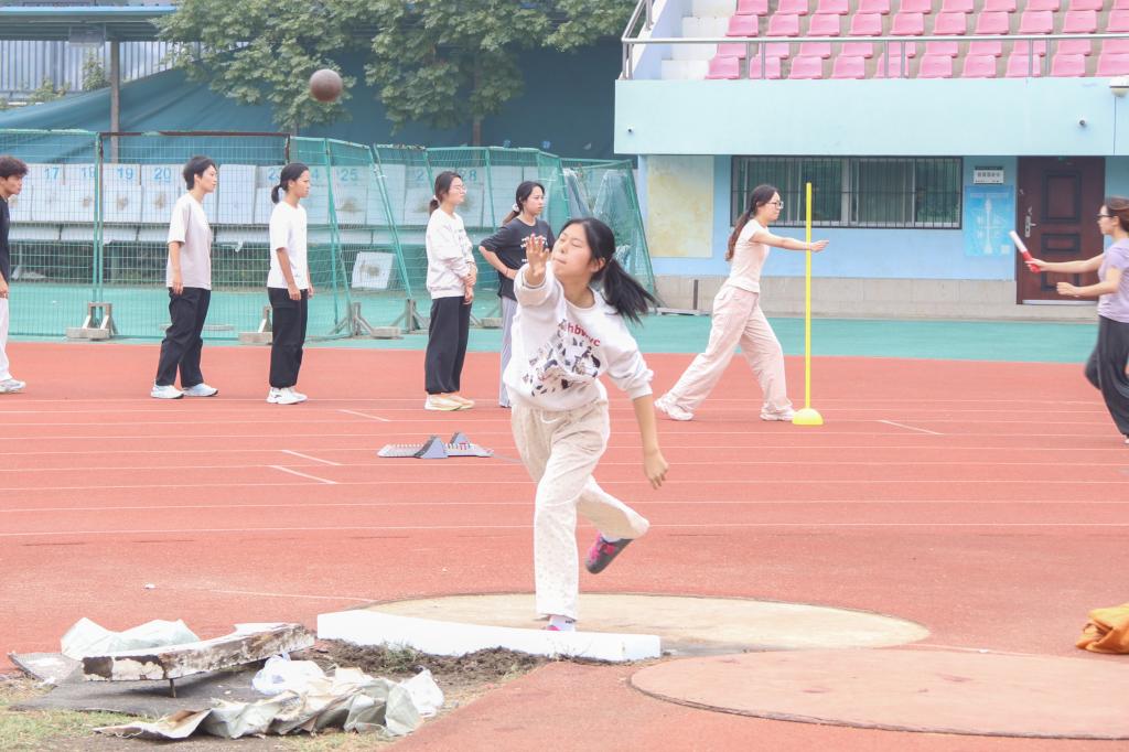 “希望自己能享受比赛过程,并努力突破自我。”地信2302班的郑文文去年参加了大学第一次运动会,夺得女子3000米季军和女子5000米第七名。长跑是一场同时考验耐力和速度的挑战,郑文文听说今年校运会有很多厉害的同学参加,心里很是期待,希望和更多“跑者”在赛场上一展风采。在跳远、投掷等区域,同学们在教练的指导下,一遍遍调整姿势,力求每一次尝试都能有所突破。汗水浸湿了衣衫,却浇不灭他们心中的热情。