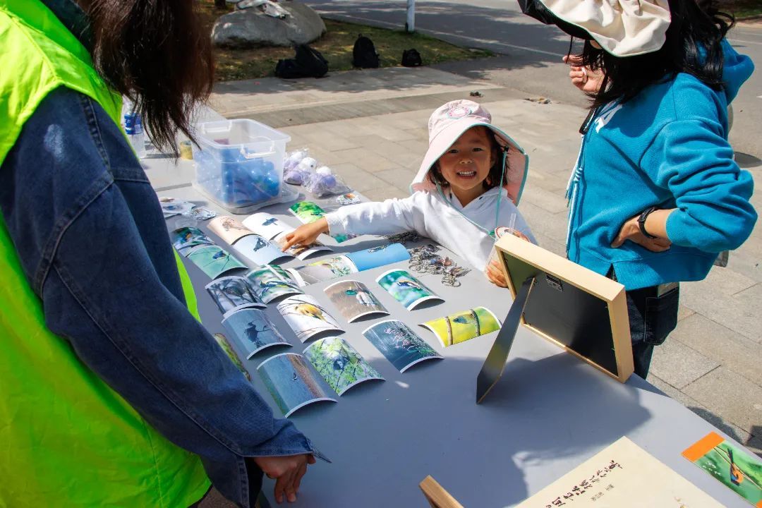 此次活动吸引了众多参与者,不少小朋友也踊跃加入。现场设置的小球抽奖环节趣味十足,参与者或是背诵一句带有鸟类的诗词,或是准确说出照片上鸟的品种,就有机会赢取奖品。绿色协会成员亲手绘制的鸟类漫画被制成了钥匙扣、贴纸等周边,既精美又富有意义,深受大家喜爱。现场还提供了单双望远镜供大家体验,更有《中国鸟类图鉴》《中国鸟类野外手册》等专业书籍帮助参与者进一步探索鸟类知识的奥秘。