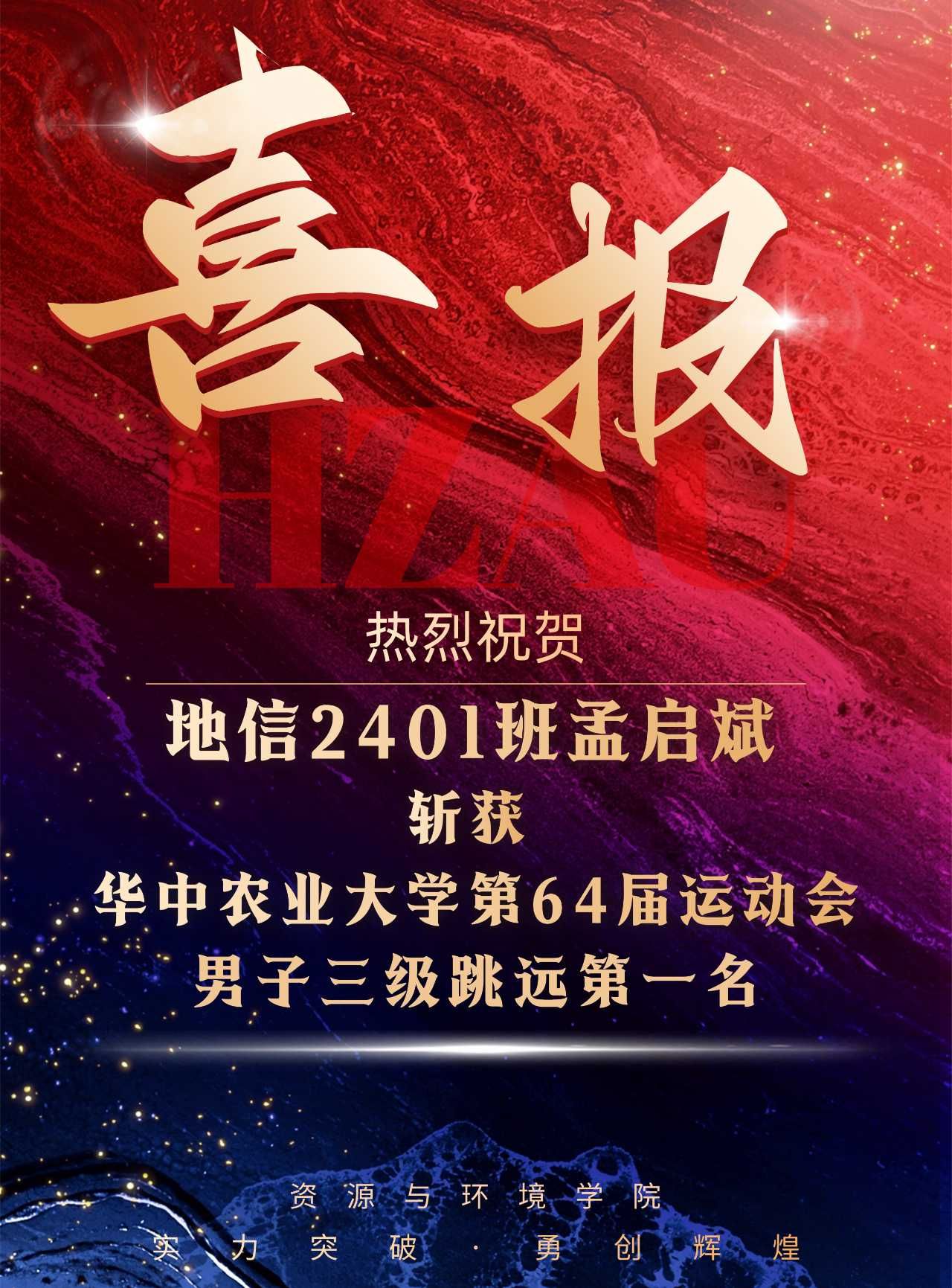 【喜报】地信2401班孟启斌斩获学校第64届运动会男子三级跳远第一名