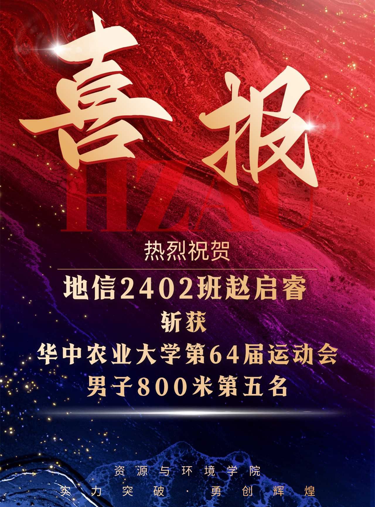【喜报】地信2402班赵启睿斩获学校第64届运动会男子800米第五名