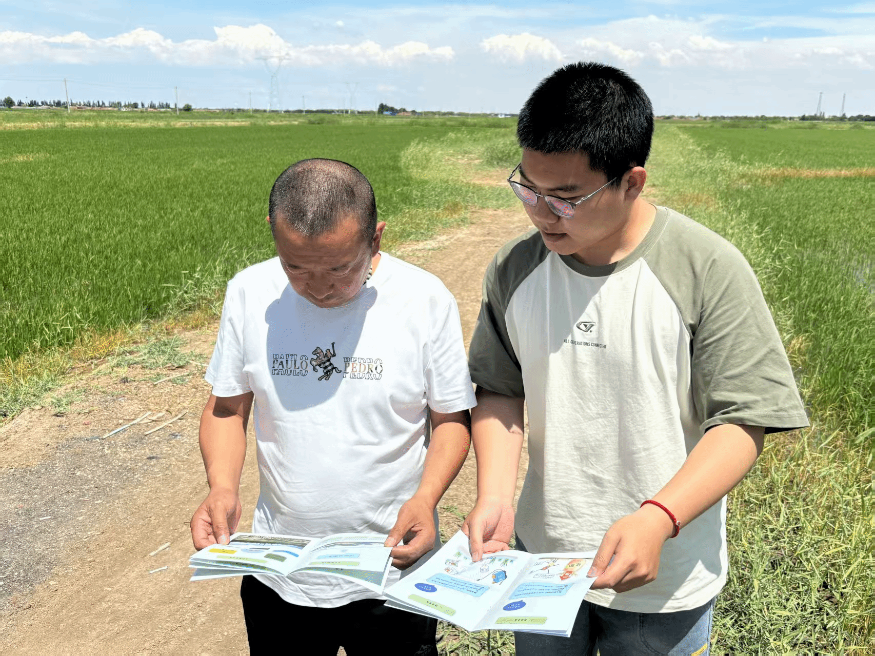 7月6日,实践团队深入宁夏石嘴山市平罗县,了解当地面对干旱区资源约束与污染压力,推广节水灌溉和生态沟渠技术,引导农户采用环境友好型生产方式。平罗县地处黄河流域重要灌区和西北干旱生态脆弱区,是宁夏平原粮食主产区和生态安全屏障的关键节点,面源污染治理直接关系到黄河水质安全、区域农业可持续发展及西北干旱区生态稳定性。队员吴同舟表示:“将节水与控污结合,是从源头实现农业绿色转型的关键。”
