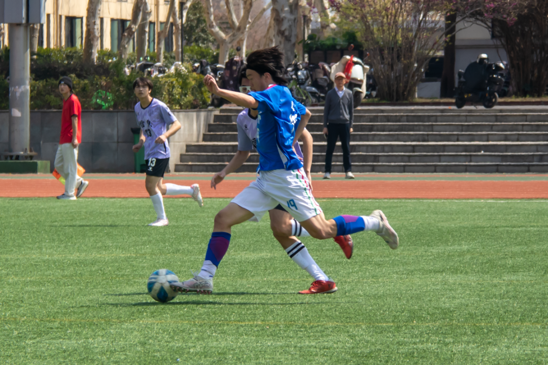 进入首场淘汰赛,我们与卫冕冠军经管学院相遇。比赛过程中,双方互有攻守,场面十分胶着,最终以 1 : 1 的比分结束常规时间比赛,进入残酷的点球大战。十二码点前,每一位主罚的队员都承受着巨大的压力,他们肩负着整个球队的期望。我方球员们虽鼓足勇气,全力施射,但仍遗憾不敌对手。尽管落败,但队员们展现出的拼搏精神和团队凝聚力,值得我们每一个人称赞。随后3月29日的半决赛,球队与动科动医学院狭路相逢。对手的凌厉攻势一度令我们的防线岌岌可危,但凭借着姜樊锦的关键进球,比赛再次被拖入点球大战。这一次,队员们战胜了心魔,门将张雨逢的神勇扑救和其他队员们的冷静施射,终让资环男足在绝境中涅槃重生。