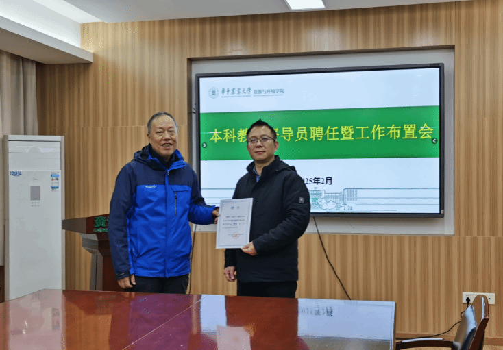 会上,石磊为学院新聘任本科教学督导员朱端卫老师、黄丽老师颁发聘书,并代表学院向两位老师对本科教学工作的支持表示感谢。他谈到,学校和学院高度重视本科教学督导工作,希望两位老师围绕本科教学中心工作,以督促导,以导提质,在2025年本科教育教学审核评估等重点工作方面给予帮助。