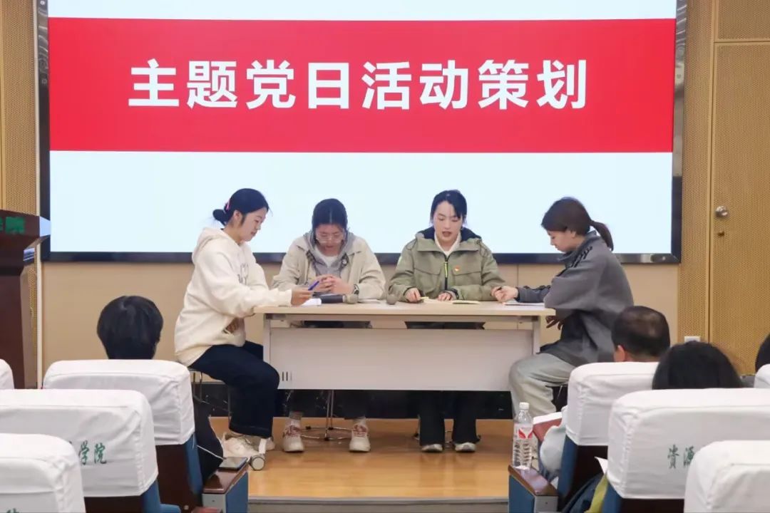 在“支部建设成效汇报”环节,各支部围绕入党积极分子培养、党员教育管理、制度建设及特色工作等内容,系统梳理实践经验,借助PPT展示,全面呈现创建学习型、服务型、创新型党组织的生动实践,充分展现支部党员积极向上的精神风貌。第三党支部提到,他们打造了全覆盖、多维度的积极分子培养体系,依托理研会、导向培训、月度测试等途径深化理论学习,还通过“行走课堂”等特色活动感悟初心;第五党支部则建立了严格的考勤制度和奖罚机制,未来还计划建立党员积分制管理制度,推动党建与专业深度融合。各支部汇报内容详实、案例鲜活,彰显出在规范化建设中的扎实成果。