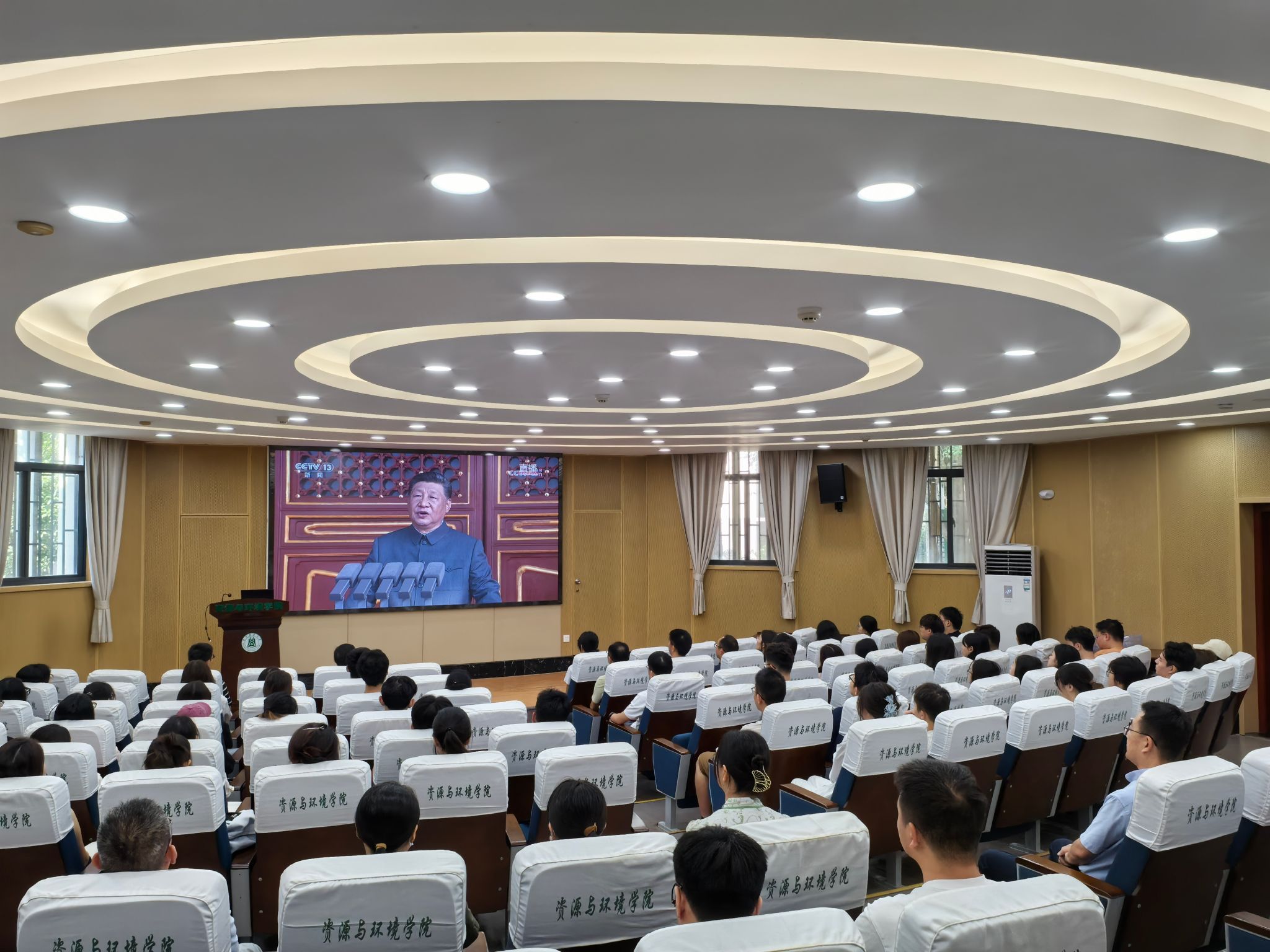 9月3日上午,纪念中国人民抗日战争暨世界反法西斯战争胜利80周年大会在北京天安门广场隆重举行,中共中央总书记、国家主席、中央军委主席习近平发表重要讲话并检阅部队。学院组织师生在西附楼报告厅集中观看阅兵仪式,习近平总书记的讲话以及阅兵仪式引发师生的热烈反响和讨论。