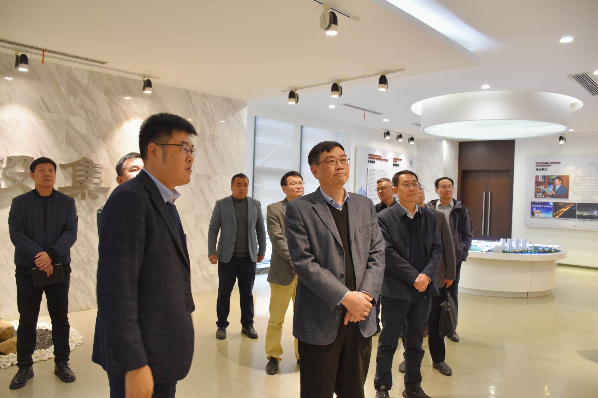 郭刚奇一行在朱红西等陪同下参观了集团展厅,详细了解企业发展历程、业务布局与科技创新成果。