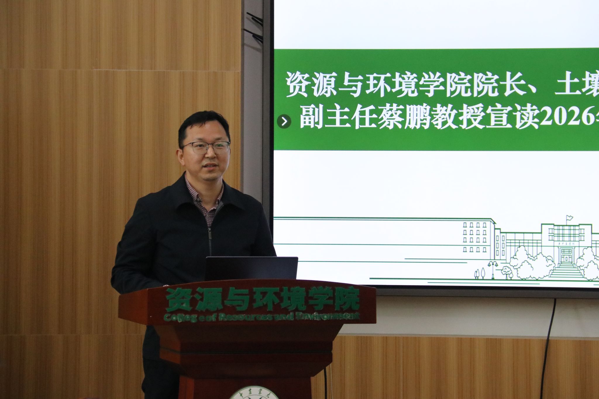 仪式最后,土壤学奖学金管理委员会主任谭文峰教授作总结讲话。他指出,学院始终传承着李学垣教授留下的“追求卓越、严谨治学、家国情怀”的优良学术精神传统,浓厚的科研氛围滋养着一代代学子成长;面对新时代“三期叠加”的机遇与挑战,他勉励全体同学要以获奖同学为榜样,与时俱进、勇攀高峰,主动拥抱人工智能技术,推动数据赋能科研,在夯实专业基础的同时,全面提升综合素质、锤炼强健体魄,以昂扬姿态迎接未来的科研挑战,为土壤学事业发展、为国家农业与生态建设贡献青春力量。