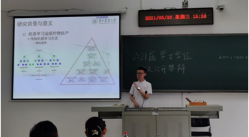 5月26日,我院2021届学士学位论文第一批公开答辩工作在三教A102、103教室顺利开展,此次公开答辩分两组共20人完成答辩。