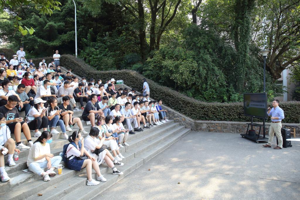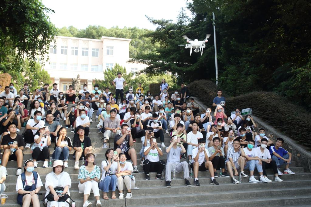 今天的主楼台阶,依然活跃着一群青年,他们席地而坐,或认真聆听、或举目张望,他们正在参加“狮山极目•无人机操作示范活动”,领略无人机操作风采。