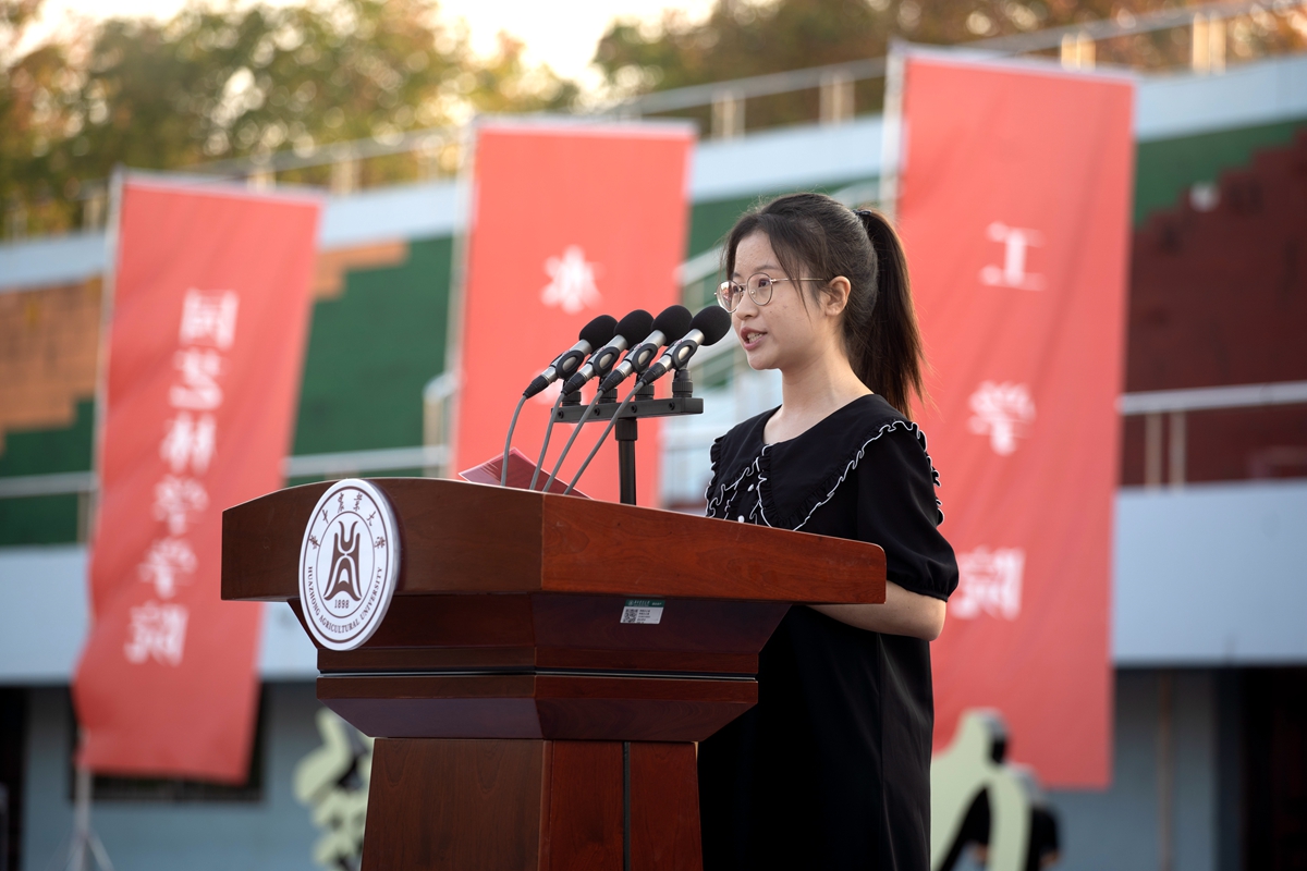 铭记历史,砥砺前行;勿忘国耻,吾辈自强。9月18日上午,纪念“九一八”事变90周年升旗仪式在东运动场举行。副校长杨少波、严建兵,部分教师代表与2021级全体本科生一起铭记历史、缅怀先烈。我院环境科学专业1901班王笑溪作为学生代表在升旗仪式上发言。