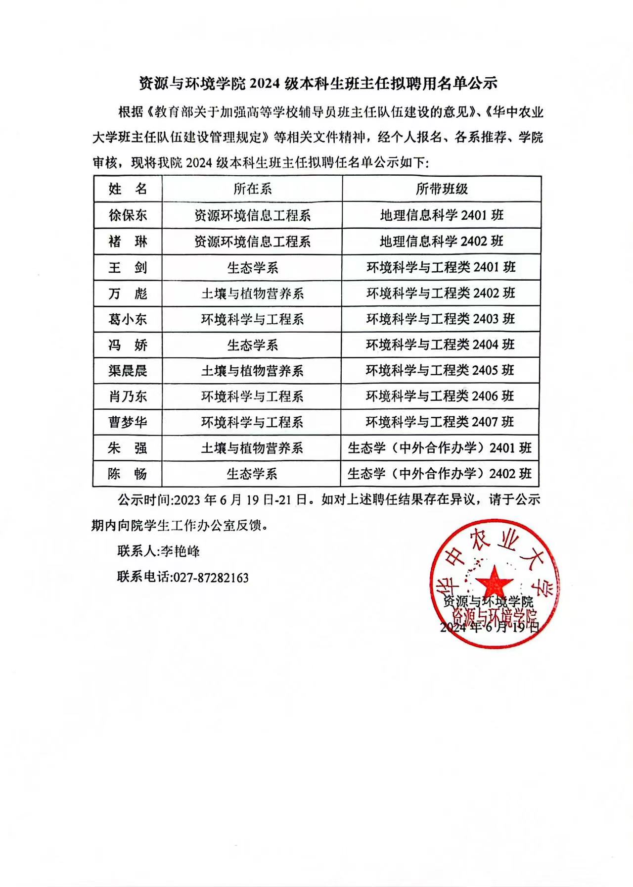 9428cn太阳集团2024级本科生班主任拟聘用名单公示