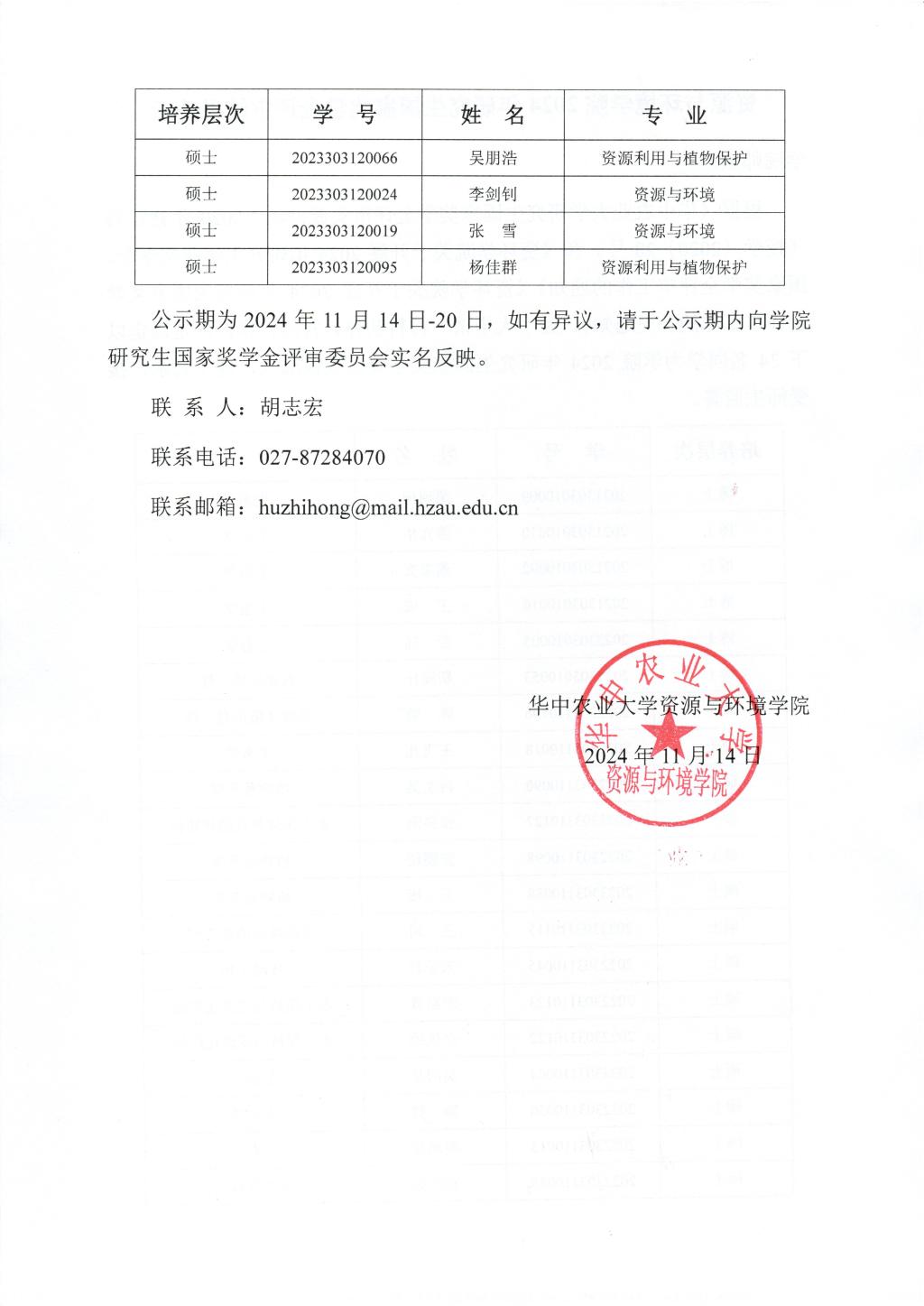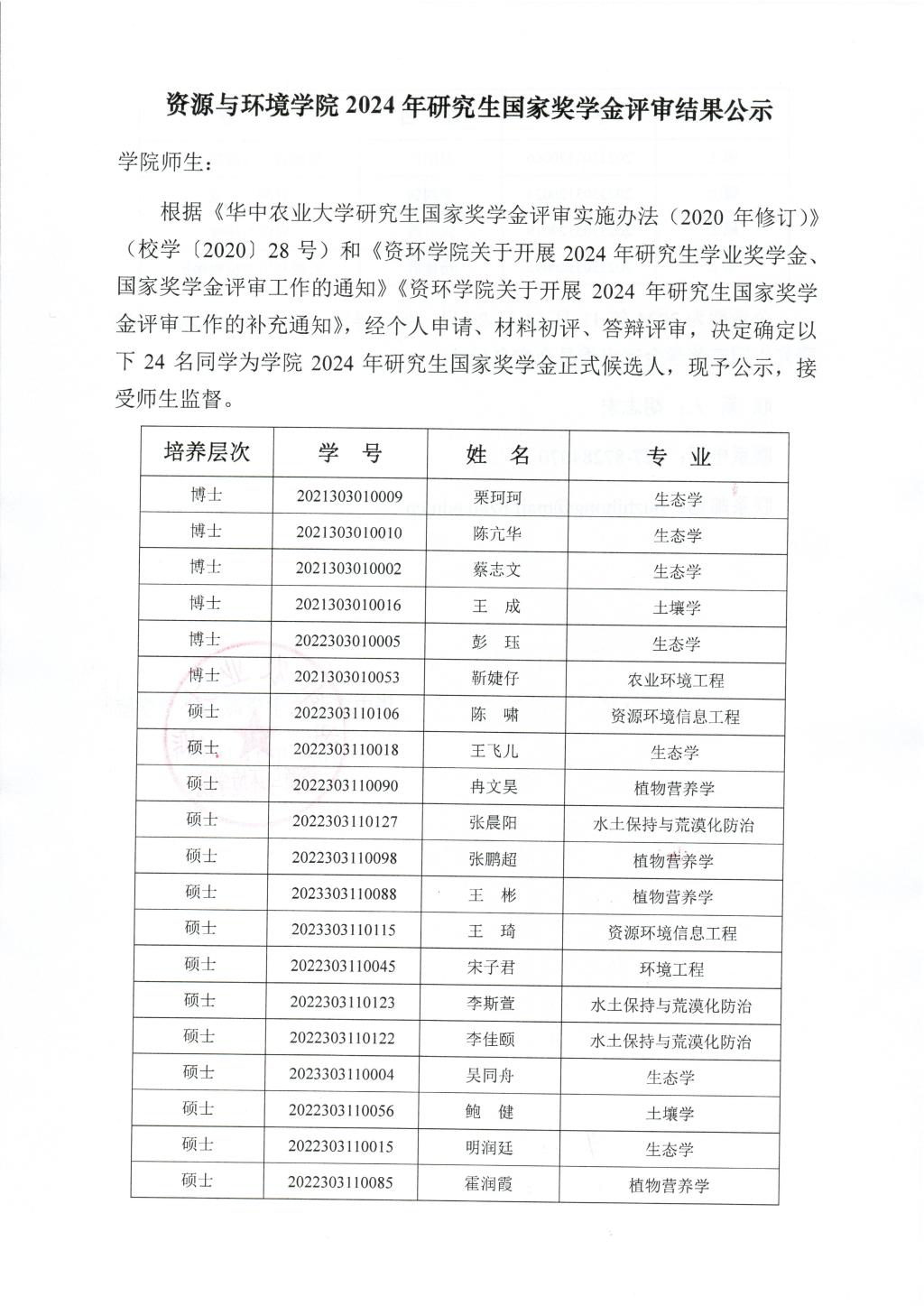 9428cn太阳集团2024年研究生国家奖学金评审结果公示