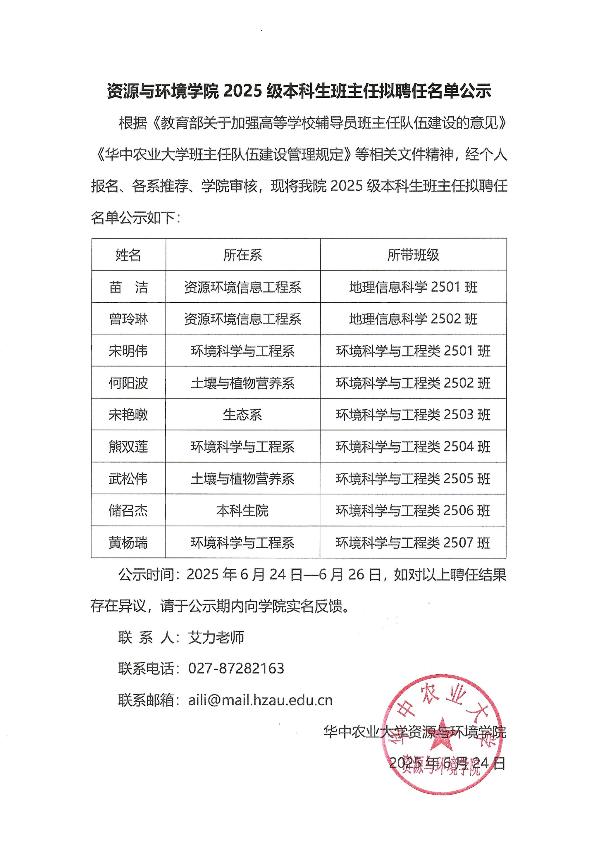 9428cn太阳集团2025级本科生班主任拟聘任名单公示