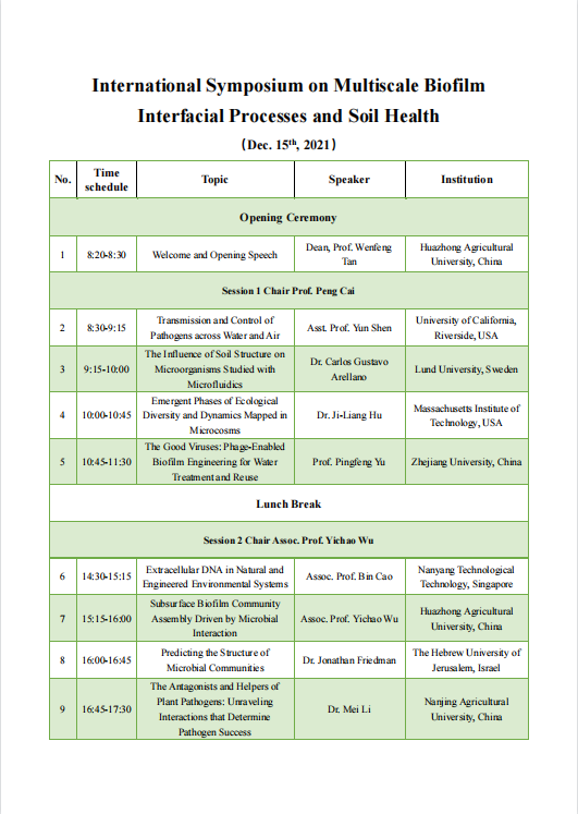 生物膜多尺度界面过程与土壤健康国际研讨会会议手册