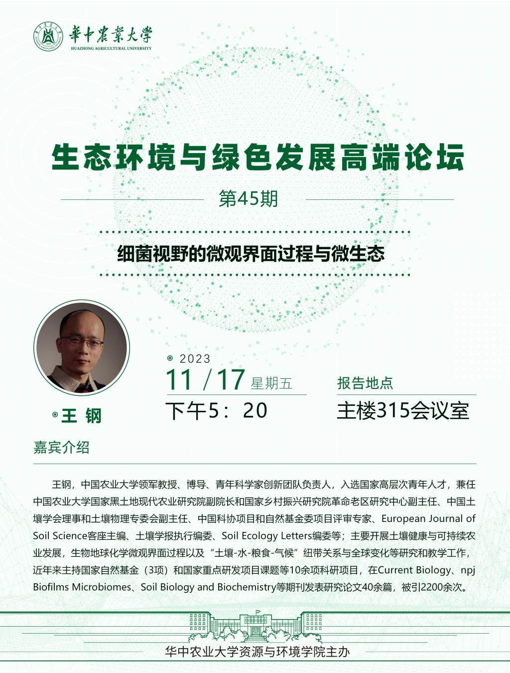 【高端论坛】45期:细菌视野的微观界面过程与微生态