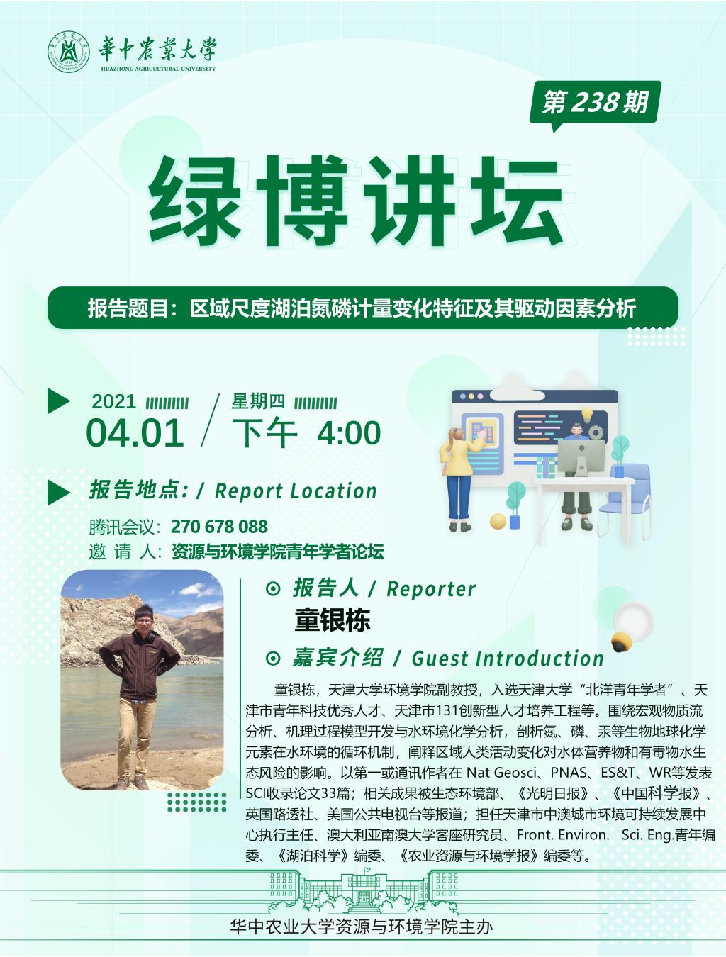 【绿博讲坛】区域尺度湖泊氮磷计量变化特征及其驱动因素分析