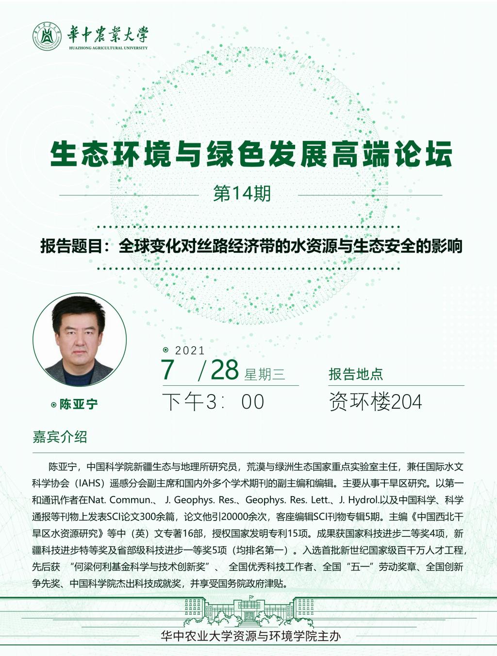 【高端论坛】全球变化对丝路经济带的水资源与生态安全的影响