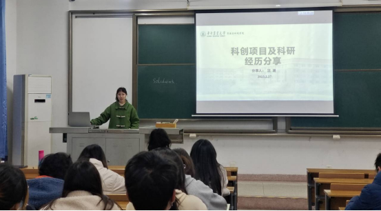 随后,环工2002班赵婉怡从《农业小流域径流氮磷输出特征及其对降雨格局的响应》项目出发,介绍了项目申报流程、实验过程、前期准备、与指导老师的沟通交流等,全方位阐述了如何在系统上进行申报,并分享了国创的答辩经验,最后以她个人的实验心路历程结尾,告诉同学们科研的目标在于提升自我和发现科研实践的乐趣。