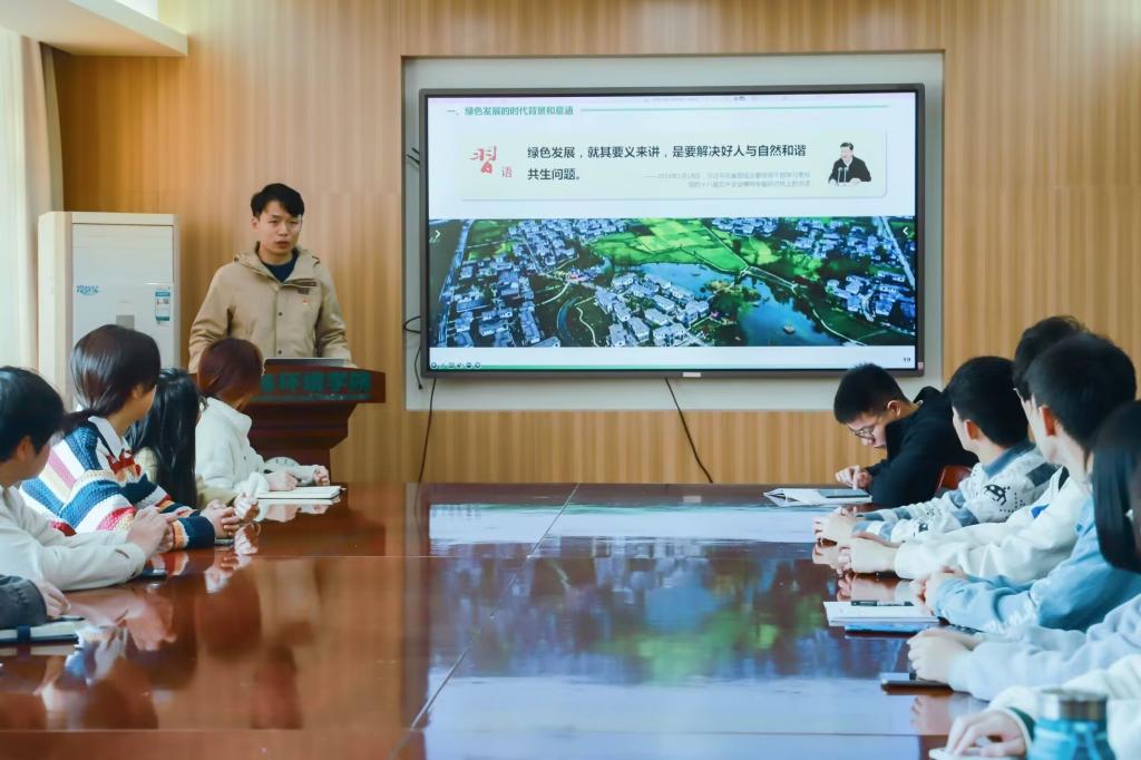 从北京天空的“十年之变”到美丽乡村的建设,从联合国生物多样性大会的举办到“山水林田湖草沙”一体化治理,我国的生态文明建设正赋能高质量发展,助力乡村振兴。通过此次专题学习,学院师生亮身份、展风采,牢记习近平总书记在党的二十大报告中对广大青年的殷切嘱托,坚定不移听党话、跟党走,立志在打好蓝天、碧水、净土保卫战中奉献青春之我,奋斗之我。