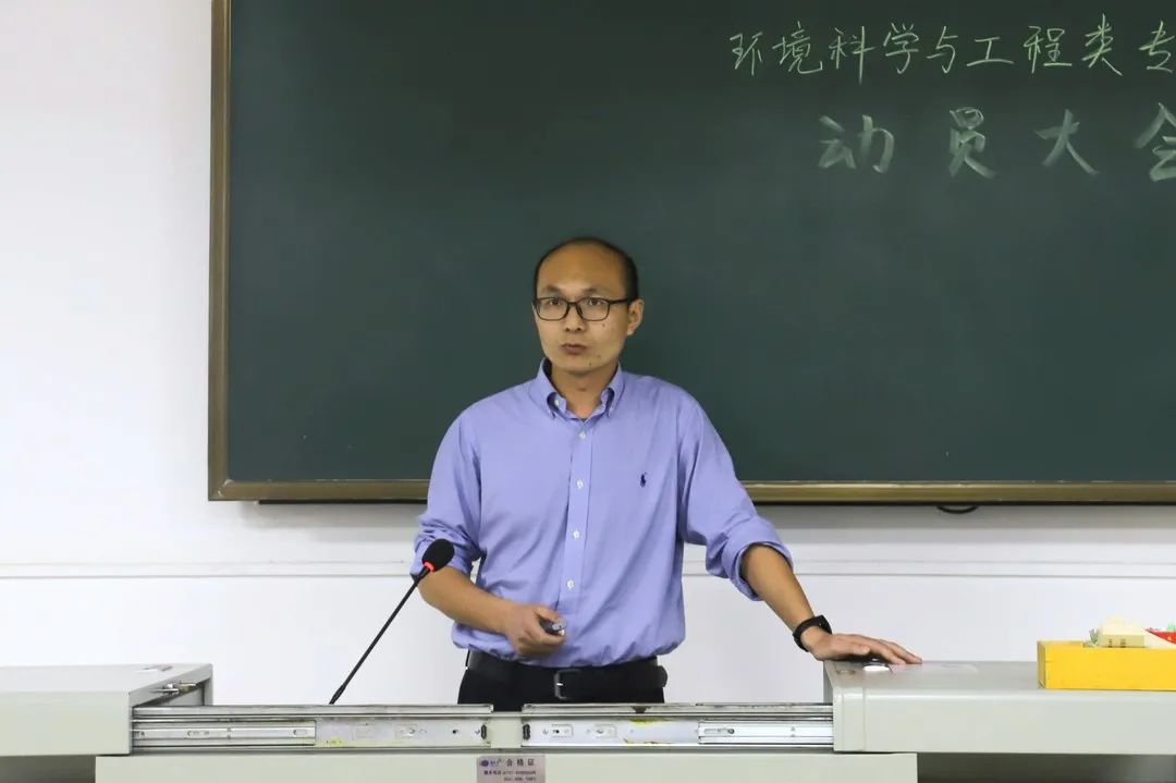 邱国红向同学们介绍了环境科学的发展方向与目标。他以自己参与的项目——电化学水处理为例,向同学们讲解环境科学的研究内容。同时他也指出,专业拥有强大的师资力量与教学科研平台,在就业、考研中选择的范围广,占据一定优势。