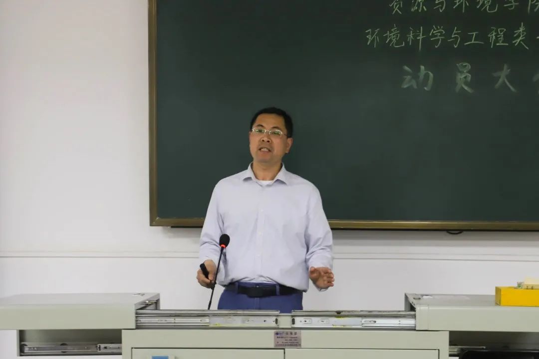 4月13日晚7点,我院于三教B205举行2022级环境科学与工程类专业分流动员大会。我院副院长石磊,教授李小坤、邱国红,副教授伍玉鹏、王军光、冯娇、蔡建波到场依次为同学们进行专业介绍及动员,帮助同学们明晰发展方向。会议由辅导员汤春燕主持,全体2022级环境科学与工程类专业本科生参加,部分学生家长线上参与。