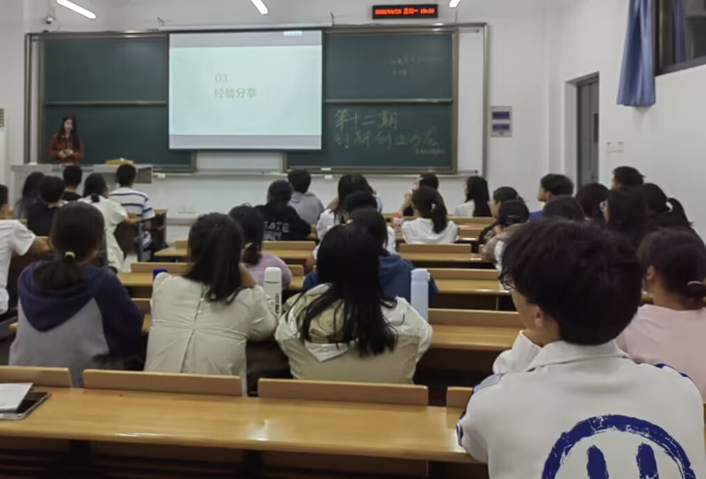 而周楠宇则是以我院获奖项目为例,向同学们介绍了两大创新创业类竞赛——中国“互联网+”创新创业大赛和“挑战杯”全国大学生系列科技学术比赛,她指出,不管从专业角度,认可度等其他方面考虑,这两大创新创业类竞赛都值得同学们在大学阶段努力尝试。