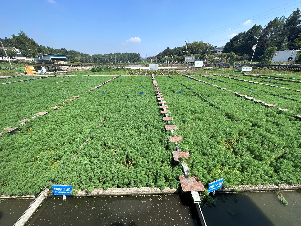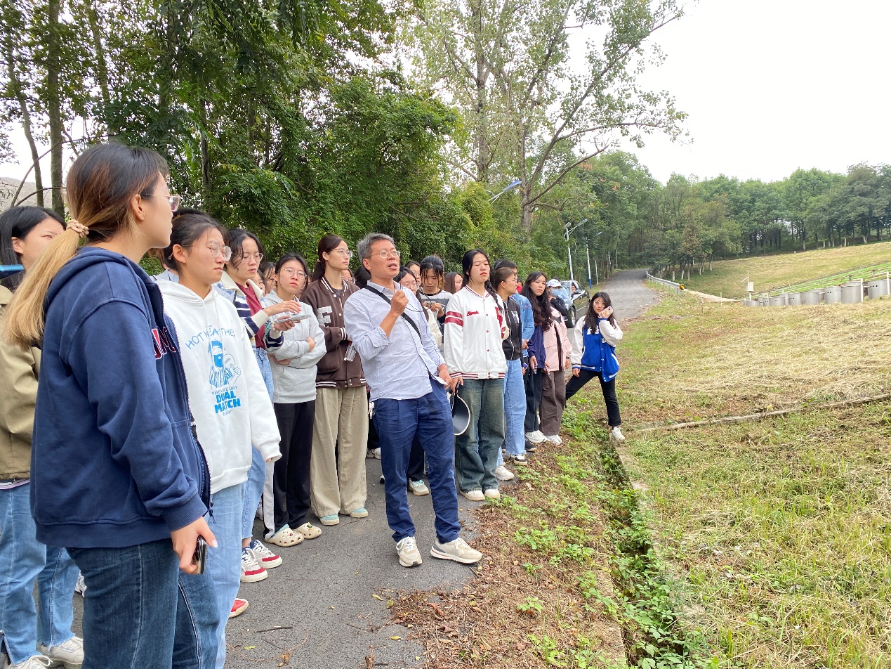 中国科学院长沙农业环境观测研究站围绕农业生产潜力挖掘与环境保护及污染治理协调发展,重点开展区域农业绿色高质量发展与农业环境保护与污染治理、土壤健康与污染修复等工作。沈建林老师带领同学们参观了研究站内的肉牛养殖场、养殖粪污固液分离及还田应用的定位试验,使用有机肥替代50%的化肥;结合养殖污水绿狐尾藻湿地组合处理技术、生物基质池-绿狐尾藻生态湿地消纳技术、农田氮磷径流流失污染及防控等应用案例,系统介绍了绿狐尾藻在农业农村水污染清洁治理中的应用。同时,绿狐尾藻又是一种高蛋白的水生植物,可以用作畜禽的优质饲料。这种以小流域为单位的“种养结合”模式是“绿色循环、生态高值”的农业经营模式的真正体现。