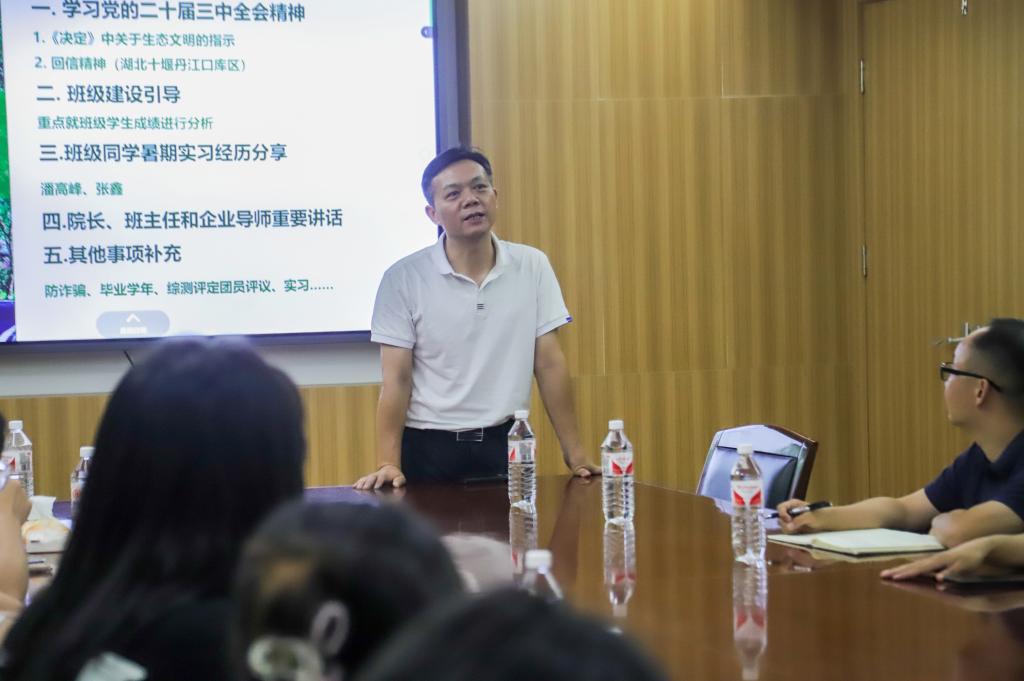 在环工类2401班的班会上,副院长蔡鹏和同学们分享了自己作为土生土长华农人的求学经历,他希望同学们在良好的校园氛围中找到个人目标、全面发展,为将来的自己交上一份满意的答卷。