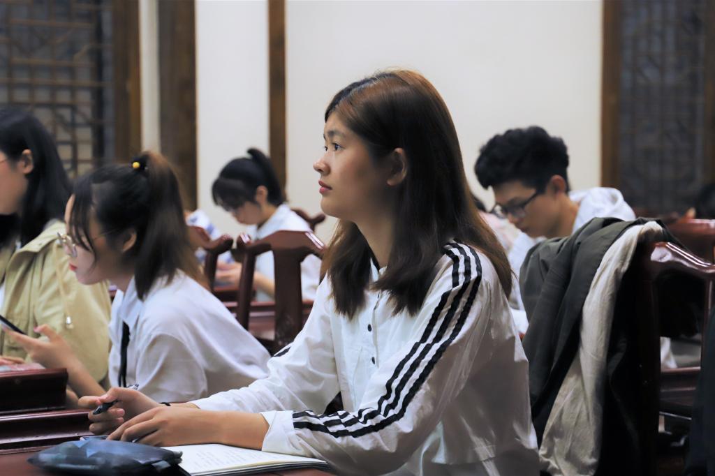 环工类2004班李俊萱向大家分享了书籍《伟大旗帜》,她说:“在这本书上,我看到了毛主席的博览群书之贵,读有字之书,又读无字之书。”她认为这本书能帮助自己理解读书的意义与内涵,正是一代代的青年人传递红色的火炬,怀着赤诚的爱国心才能一直高举伟大的旗帜。环工类2001班王培正讲述了他在高中曾参演学校话剧《红岩》的经历,饰演许云峰的他在话剧最后与江姐等人一齐呐喊的那句“红岩啊,你有多少优秀的故事,伴着滚滚江水,我们永远为你歌唱”深深地触动了他。虽然身为扮演者的他已经无数次看过这个片段,但他颤抖的眼神里依然闪烁着耀眼的光彩。“我多次被那种视死如归的革命气概所触动,”他感叹道,“《红岩》帮我们这一代人重温过往,记住历史,记住那令人难忘的革命岁月。”