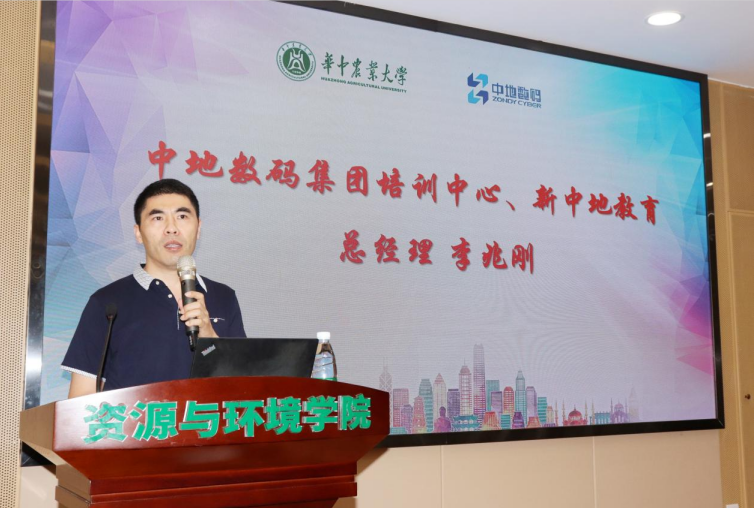 7月12日上午,9428cn太阳集团与中地数码集团校企联合实训开班仪式在9428cn太阳集团古天乐报告厅隆重举行。9428cn太阳集团张建副教授、郭龙老师,中地数码集团培训中心、新中地教育总经理李兆刚博士、方胡朝经理、邢影主任、于彬春工程师、许铵文工程师,GIS时代记者付莎莎,9428cn太阳集团古天乐全体参训学生等参加了开班仪式。开班仪式由中地数码集团培训中心、新中地教育方胡朝经理主持。